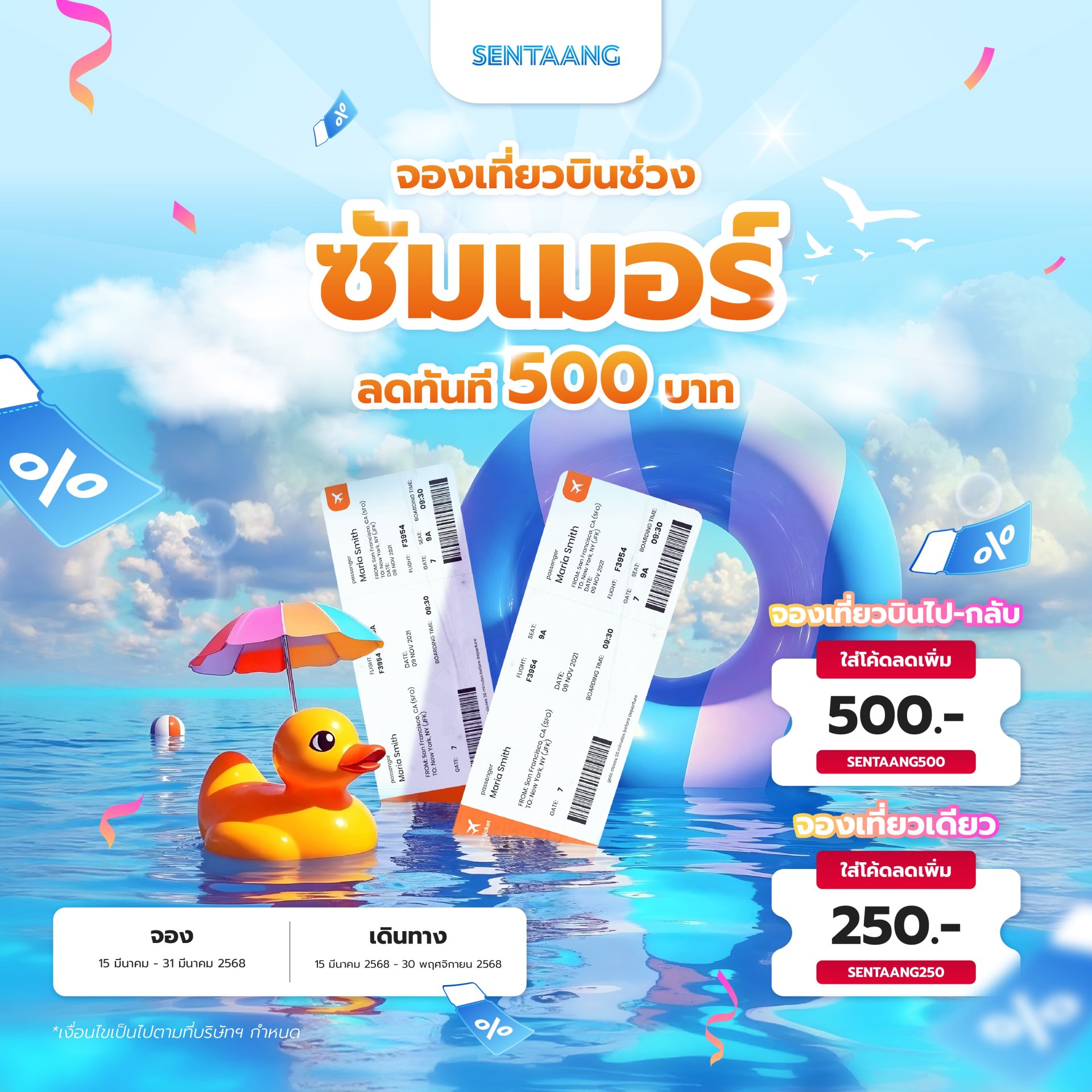 SENTAANG SUPER SAVE ลดสูงสุด 1,200 บาท! แค่จองเที่ยวบินกับเรา รับส่วนลดแบบจุก ๆ x3 ทันที!